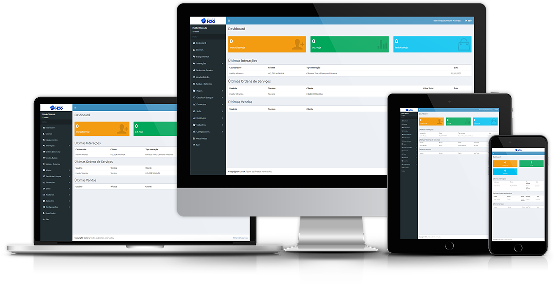 A Plataforma H2O é completo e intuitivo, e apresenta todas as configurações necessárias para o funcionamento de todos os módulos. Ao adquirir um plano conosco, sua Plataforma será implementada e agendaremos treinamento online apresentando suas funcionalidades.